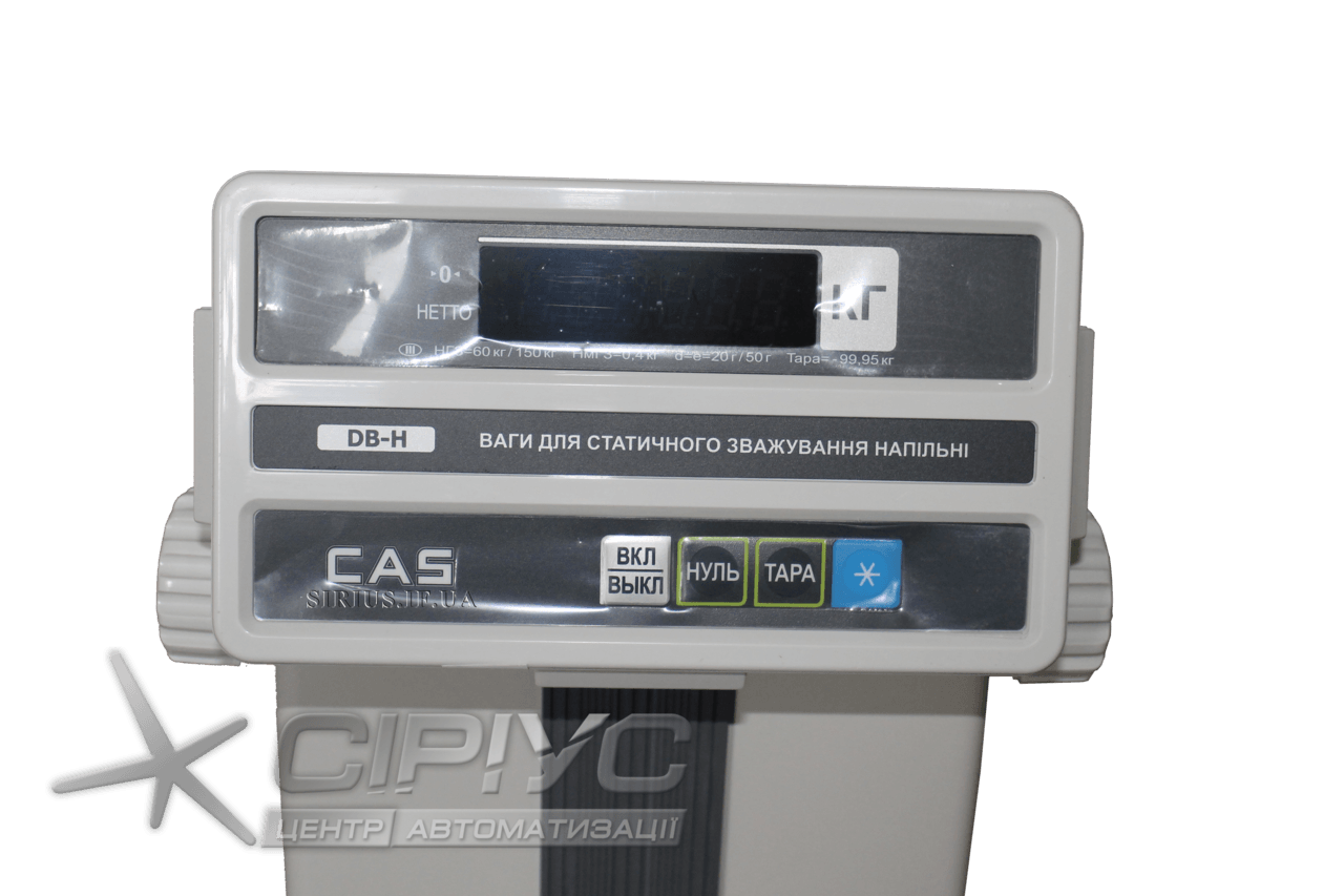 Друга модифікація моделі CAS DB-H з межею зважування до 150 кілограм. Двохдіапазонний режим зважування: до 60 кілограм має похибку до 20 грамів, від 60 до 150 кілограм похибка становить до 50 грам. Таку високу точність забезпечує якісна електроніка, якою і славиться корейський бренд CAS. Модифікація DB-150H, як і DB-60H, також має вбудований інтерфейс RS-232, платформу з нержавіючої сталі, функцію мінусовки тари, автоматичну установку нуля.