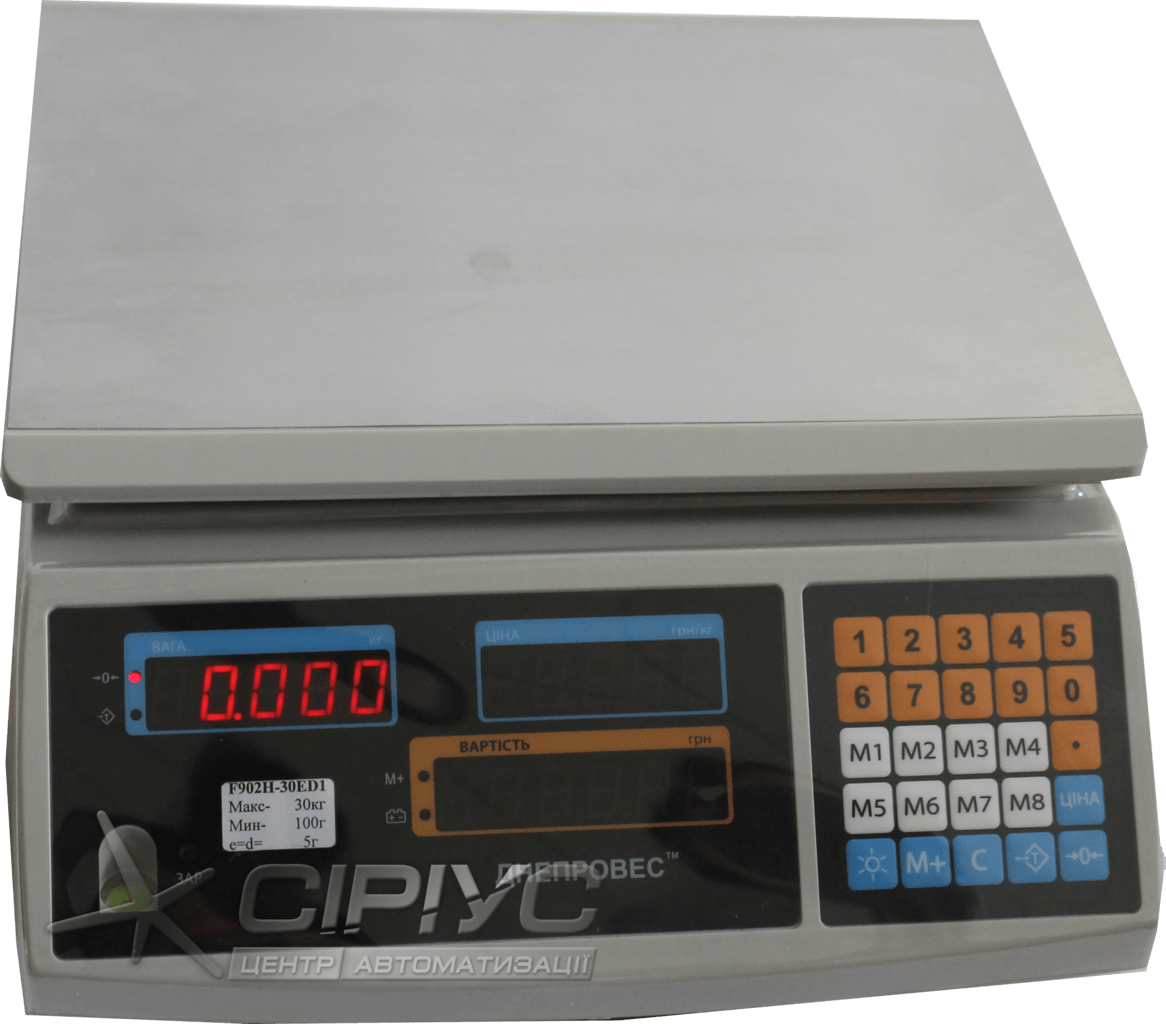 Мають 8 ячєєк пам'яті прямого доступу (М1-М8), а також можуть підсумовувати покупки (до 99). Яскравий світлодіодний дисплей. Автономна робота від акумулятора до 40-50 годин з автоматичним економ режимом. Витримують температури -10° C + 45° C. Платформа пластикова з нержавіючої пластиною розміром 305 х 230 мм.