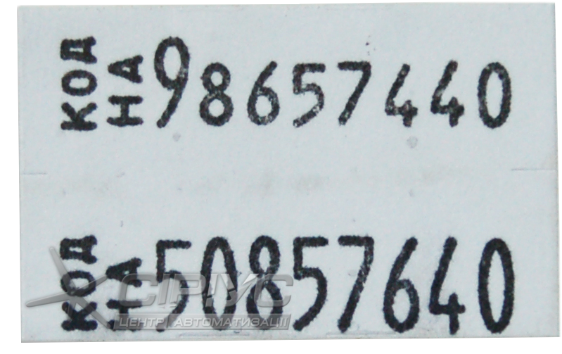 Прямокутна етикетка, розміром 26 мм*16 мм, вміщає по 10 знаків в кожному рядку. Розмір шрифту - 1,5 мм*4 мм.