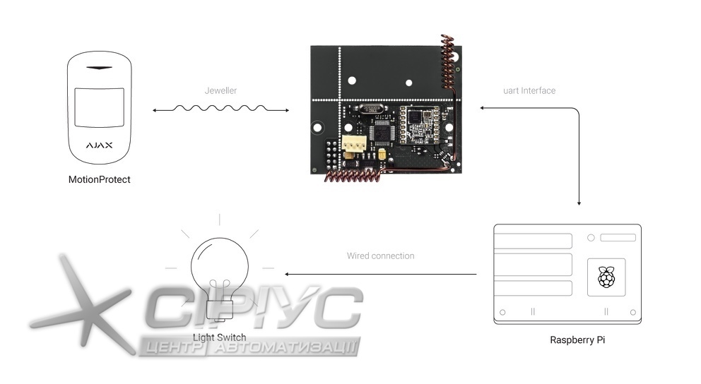uartBridge. Модуль-приймач для підключення датчиків Ajax до бездротових охоронних і smart home систем.