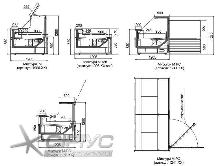 - "Міссурі М": температурний режим +0.. +8 °С; підйомна полиця покупця на газ-ліфтах; охолоджуваний бокс.