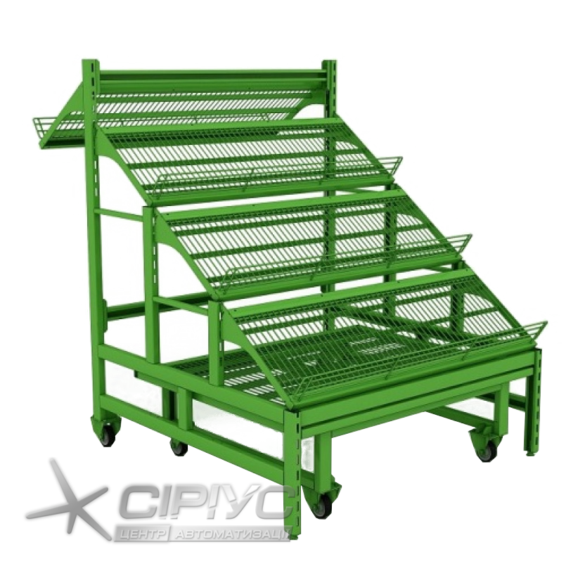 Стелаж овочевий з подіумом на колесах