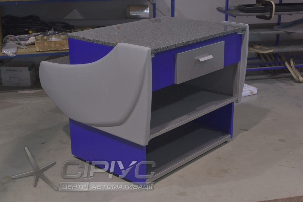 Для зручності прилавок оснащений висувним ящиком з доводчиком, а також гранітної стільницею.