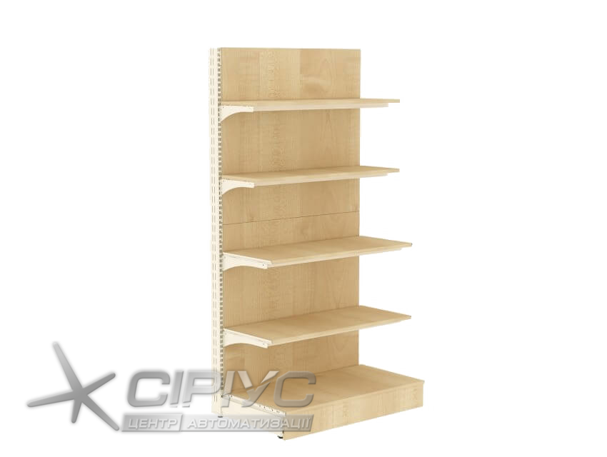 Стелаж пристінний з ДСП. За допомогою правильного розташування, установки конструкцій і використання спеціальних аксесуарів, торговий стелаж здатний привертати увагу і мотивувати споживача до покупки товарів.Розроблені з урахуванням основних принципів мерчендайзингу: зручний і швидкий пошук потрібних товарів, ефективна викладка по товарних групах.